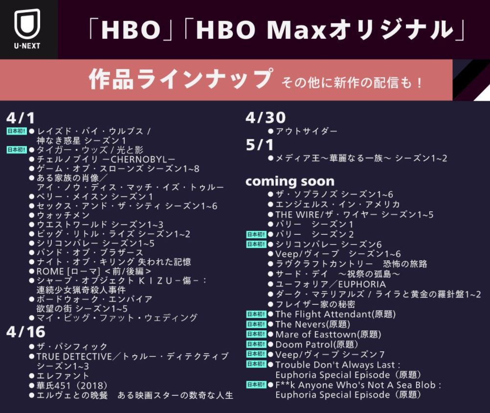 2021年4月*Hulu.Amazonプライム.Netflix.他・配信予定